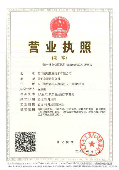 农产品质量清静检测机构审核及格证书CATL